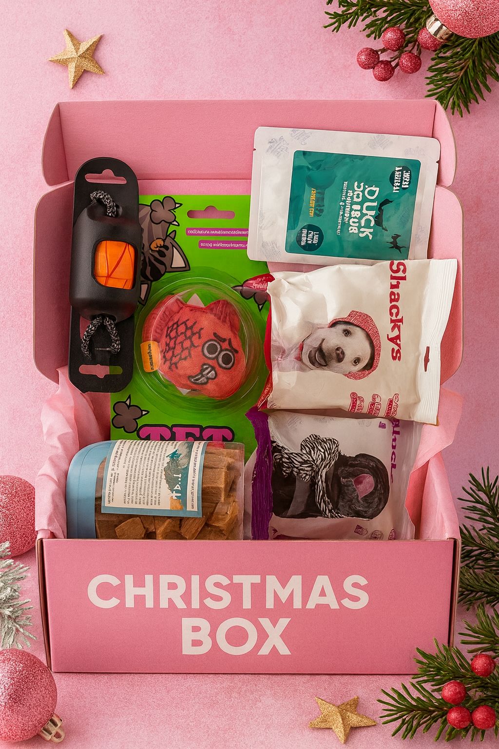 La Box Natalizia di Villa Chihuahua è una selezione esclusiva di snack naturali, masticativi e giochi premium pensati per il benessere e il divertimento dei Chihuahua. Disponibile in due formati, offre prodotti di qualità superiore rispetto al prezzo pagato.