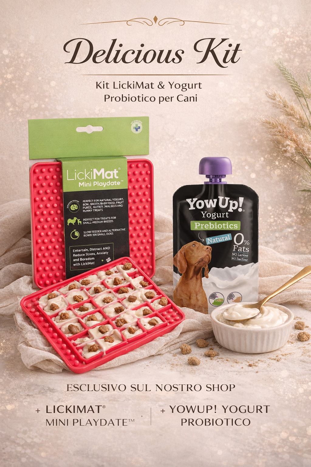 LickiMat® Mini Playdate™ è il tappetino leccabile ideale per cuccioli e cani di piccola taglia. Riduce stress, rallenta il pasto e favorisce il benessere quotidiano.