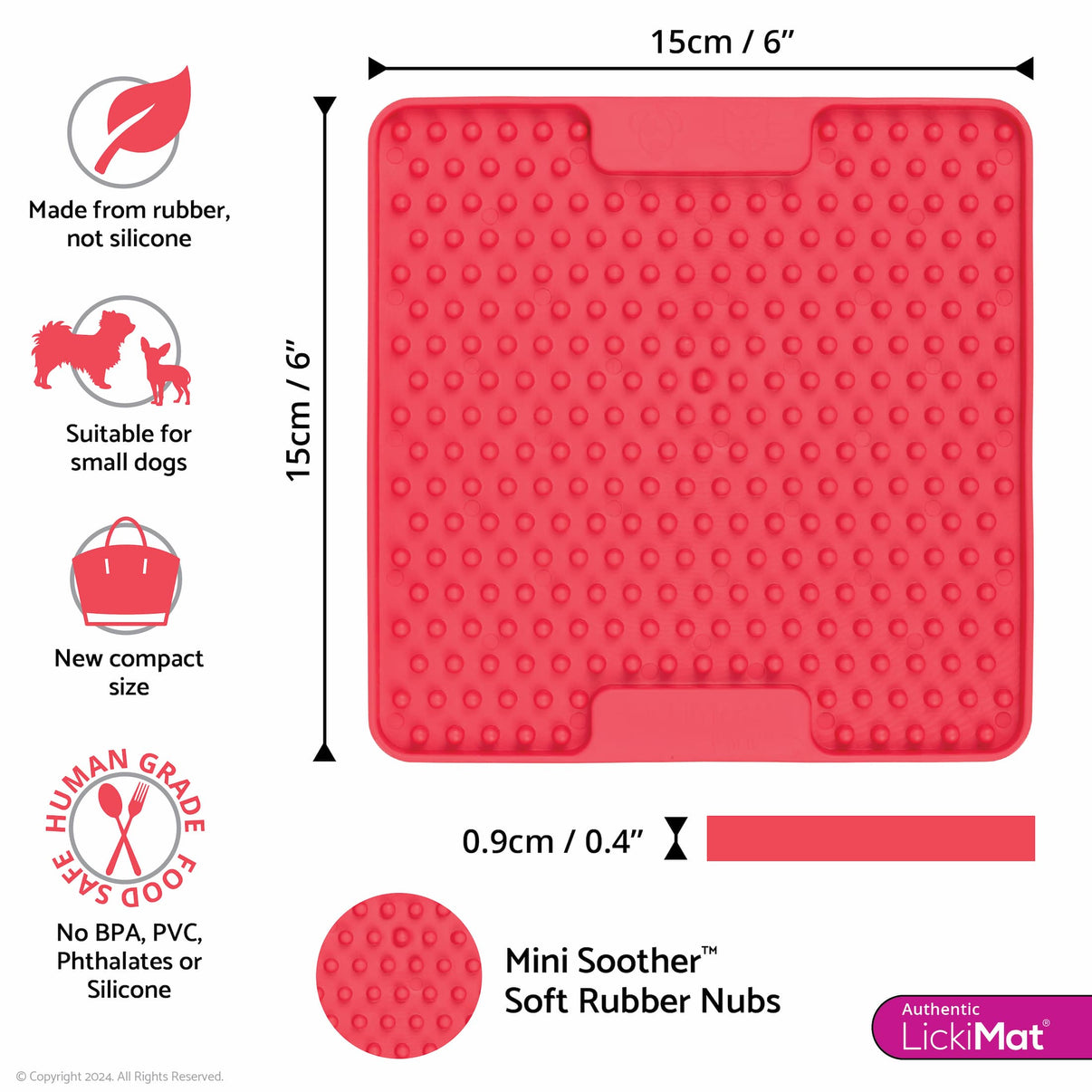 LickiMat® Mini Classic Playdate™ è il tappetino leccabile ideale per cuccioli e cani di piccola taglia, progettato per trasformare il momento del pasto o dello snack in un’esperienza di arricchimento mentale e calmante.